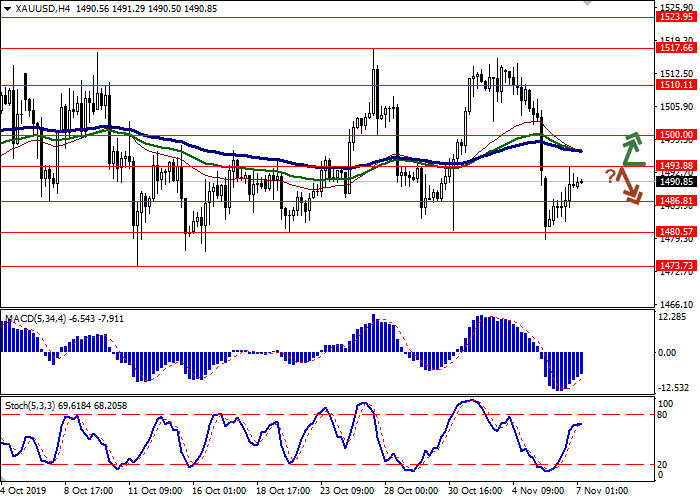价格突破1493.88水平后,可以开设多头头寸,目标为1510.11。止损水平为1482.00。