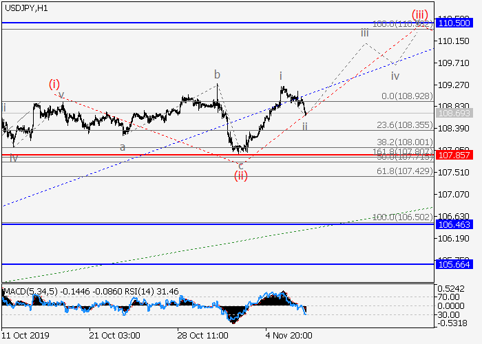4小时图中,第三波iii在(C)的较高水平1的第一波内发展。目前,1的iii的较低水平(i)的第一波已形成,局部修正已结束为iii的波(ii),呈不规则平面,iii的波(iii)已开始发展。如果假设正确,价格将会升至110.50–111.00。该情况的关键止损水平为107.85。