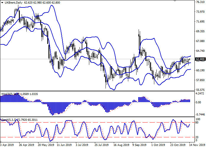 日线图中,布林带逐渐水平反转。价格区间在此基础上略有扩大,为看涨趋势创造了通往局部新高的通道。平滑异同移动平均线正在增长,保持弱的买入信号(位于信号线之上)。在短时间内的下行修正后,随机指标再次反转增长,接近最高点,表明该交易工具可能在超短期内超买。