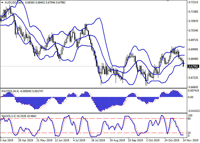 日线图中,布林带水平反转。价格区间略有扩大,与目前的“看跌”情绪不符。平滑异同移动平均线下跌,保持卖出信号(位于信号线下)。该指标正试图在零点以下盘整。随机指标在接近其低点后,向水平方向反转,显示超短期内澳元有超卖风险。