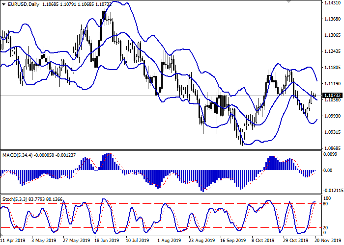 日线图中,布林带呈稳定下降趋势。价格区间正在收窄,反映出短期内交易的不确定性。平滑异同移动平均线倾向于上行反转,保留卖出信号(位于信号线以下)。随机指标正在增长,表示超短期内“看涨”趋势的良好发展前景。