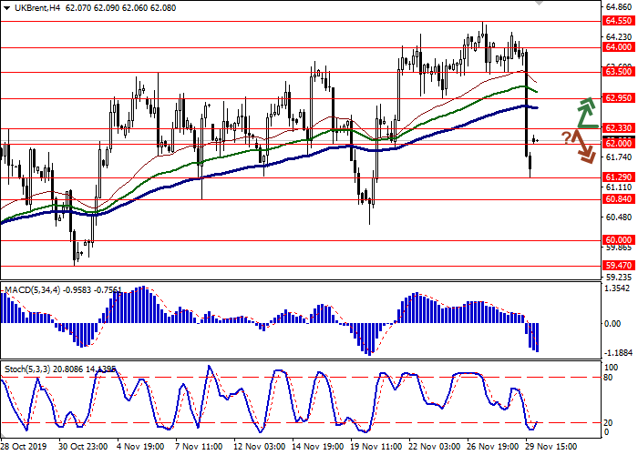 价格从62.33水平反转,随后跌破62.00水平后,可以开设空头头寸,目标为60.84。止损水平为62.50–62.60。实施期:1-2天。