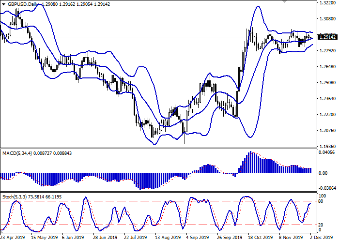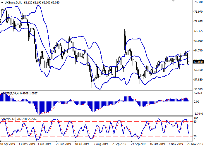 日线图中,布林带呈逐渐下降趋势。价格区间从下方收窄,反映出在新交易周伊始出现修正性增长。平滑异同移动平均线下跌,保持弱卖出信号(位于信号线以下)。随机指数正在从低点回升,表示超短期内超卖。