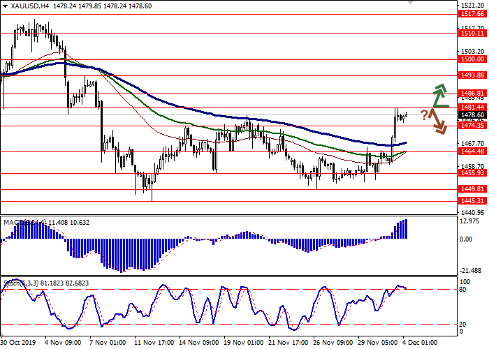 今天的亚洲市场上,金价稳定,接近前一天刷新的局部高点(1481.44)。美国对从巴西和阿根廷进口的钢铁和铝征收更高的关税后,投资者纷纷规避风险,推动了昨天油价的增长。此外,中美贸易协定可能要推迟到2020年11月美国总统选举后再签署,投资者对此反应消极。就当代世界的变化速度来说,这个时间期限问太长了。此外,特朗普再次威胁将要在12月15日提高对中国商品的进口关税,这可能导致长期以来取得的所有谈判进展“付之一炬”。