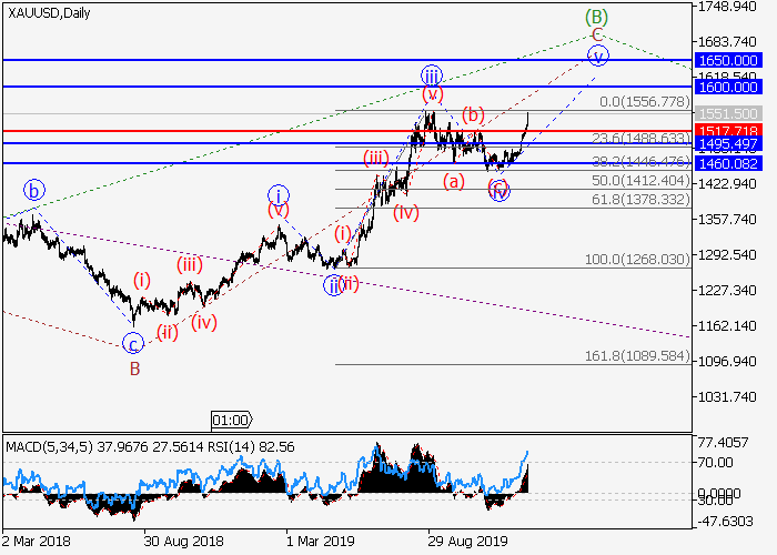 修正起,可以在1517.71水平以上开设多头头寸,目标为1600.00–1650.00。实施期:7天以上。
