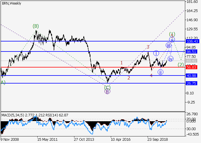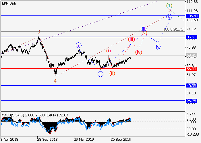 日线图中,C的较高水平(1)的第一波正形成,其中(1)的波5正在发展。目前,5的较低水平iii的第三波正形成,其中iii的波(iii)正在发展。如果假设正确,中期和长期内,价格可能会持续升至86.50–106.43。该情况的关键止损水平为56.83。