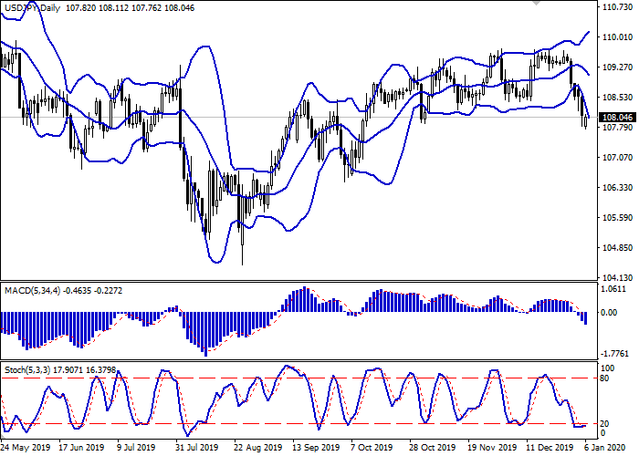 今天的亚洲市场上,美元对日元显示出强劲增长,测试了108.00的水平,并试图突破。该货币对在美元大幅下跌后进行了修正,美元大幅下跌是由于中东紧张局势升级后对安全资产的需求迅速增加所引发的。由于伊朗将军在美国导弹袭击巴格达机场后身亡,双方相互威胁,投资者纷纷分散风险。日本周一公布的宏观经济数据给日元带来了额外的压力。日本Jibun银行12月制造业PMI指数从48.8降至48.4,结果比平均预期还要糟糕。