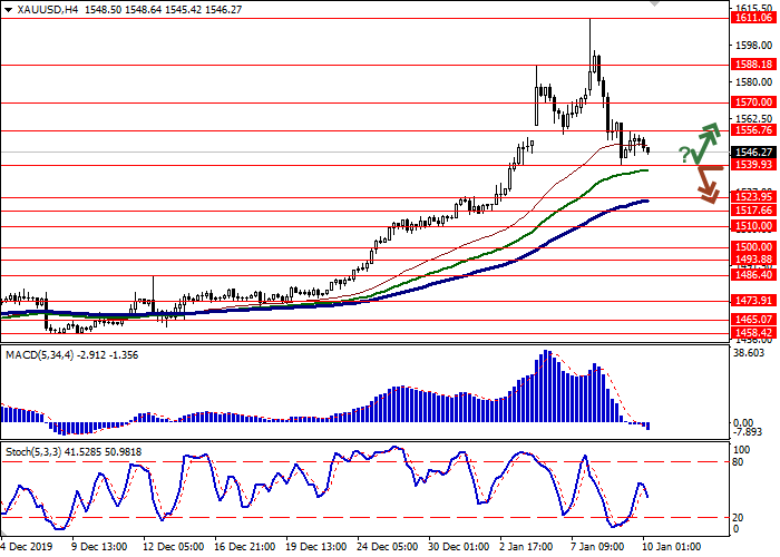 在美伊之间的紧张关系开始出现迅速缓和后,金价继续下跌,出现了长期修正。价格下跌约0.26%,测试1545.00水平,并试图跌破该水平。伊朗正式宣布对被苏莱曼尼将军的“复仇”结束,而特朗普在全国发表讲话,宣布决定对伊朗实施新的经济制裁,将全面军事行动的可能性降至最低。当然,某些紧张情绪依然存在,因为双方谈判不太可能一帆风顺,但对避险资产的需求明显下降,投资者正在寻找新的增长动力。今天,交易员们关注的焦点是12月美国劳动力市场报告,这份报告可能会决定美联储在2020年上半年的政策。