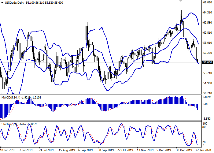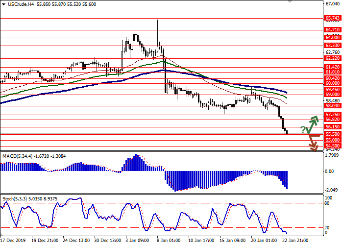 目前,该货币对已经下跌了约0.60%,测试了55.60,并试图跌破该水平。周三,油价创下1月8日以来的最大跌幅,原因是国际能源署(IEA)更新了预测。在正在举行的达沃斯经济论坛上,国际能源署署长法提赫•比罗尔(Fatih Birol)表示,他预计2020年上半年“黑金”过剩。API报告对油价施加了额外的压力。1月17日当周,原油库存增加160万桶,而此前一周增加了110万桶。
