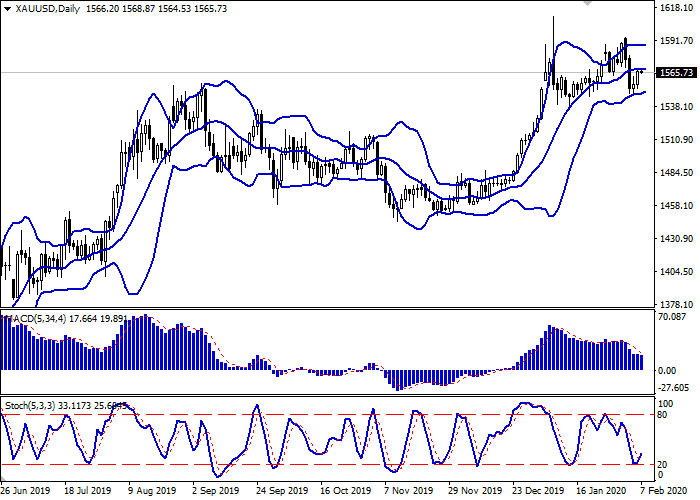 日线图中,布林带呈平面动态。价格区间由下略收窄,反映出短期内交易的不确定性。平滑异同移动平均线下跌,保持弱卖出信号(位于信号线下)。随机指标从20点反弹,转为增长,表明超短期内出现修正情绪。