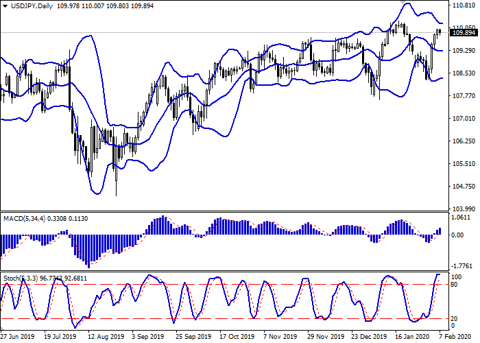 日线图中,布林带水平反转。价格区间正试图盘整,但就目前的市场活动水平而言,仍相当宽敞。平滑异同移动平均线图柱正在增长,保持稳定的购买信号(位于信号线之上)。随机指标在达到100水平后,向水平方向反转,表明美元在超短期内强超买。
