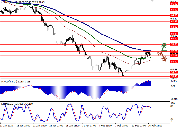 价格突破57.78水平后,可以开设多头头寸,目标为60.00 或60.84。止损水平为56.50–56.00。