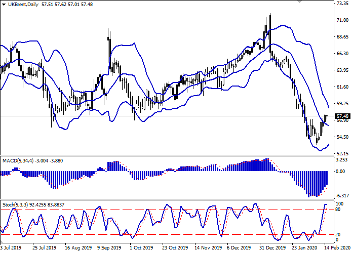 日线图中,布林带平滑地反转进入水平平面。价格区间正在收窄,反映出在短期/超短期内出现了上行动力。平滑异同移动平均线指数增长,维持强买入信号(图柱位于信号线以上)。随机指数达到最高点,并反转进入水平面,表明该工具可能在超短期内超买。