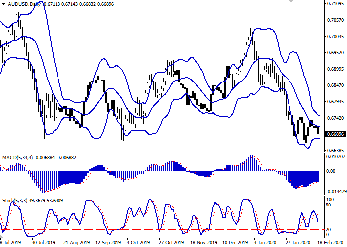 价格突破0.6677水平后,可以开设空头头寸,目标为0.6620。止损水平为0.6700–0.6710。