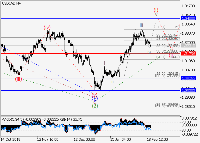 日线图中,较高水平的下行修正作为第二波(2)已形成,波(3)一开始发展。目前,(3)的1的i的较低水平(i)的第一个入市波已形成,其中(i)的波iii已完成,局部修正几乎已完成为(i)的波iv。如果假设正确,修正完成后,价格将继续升至1.3400–1.3564。该情况的关键止损水平为1.3179。