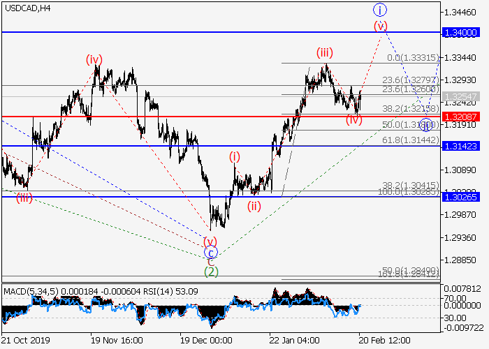 日线图中,较高水平的下行修正形成为第二波(2),波(3)已开始发展。目前,(3)的1的较低水平i正形成,其中局部修正已结束为i的波(iv)。如果假设正确,价格将会升至1.3400–1.3564。该情况的关键止损水平为1.3208。