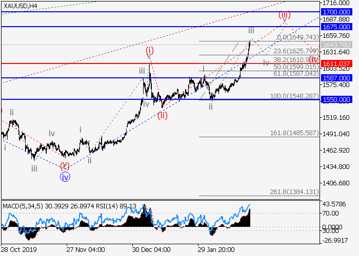 价格跌破1611.03,并在该水平以下进行盘整,可能会使价格跌至1587.00–1550.00。