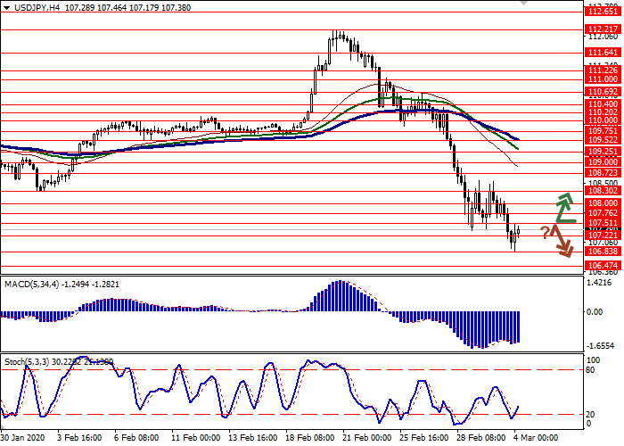 今天的亚洲市场上,美元兑日元汇率走强,从昨天的急剧下跌中恢复过来,昨天的下跌是由于美联储立即将利率下调0.50%。美元上涨约0.10%,测试了107.40-107.50的水平,试图突破。出现积极动态的原因是短期获利修正的技术因素,投资者仍对不确定的前景感到担忧,并表现出相当的谨慎。