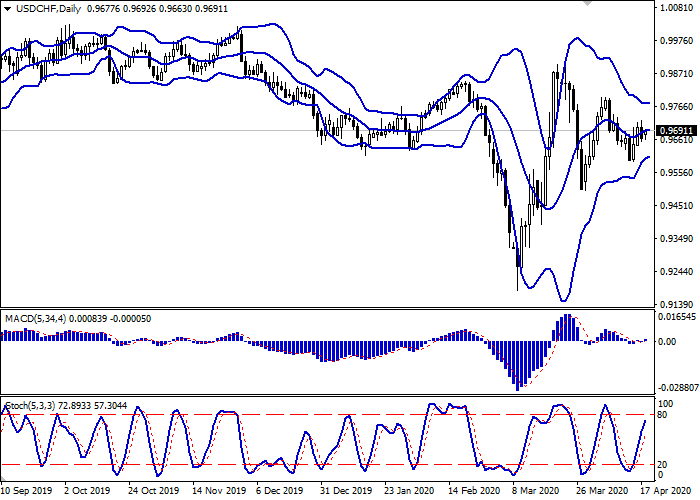 今天的亚洲市场上,美元兑瑞郎小幅上涨,在上周五下跌后有所盘整。对美元的高需求支持着该货币对接近当前水平,但投资者风险兴趣的逐渐恢复限制了进一步的增长。特朗普建议在一个月内分阶段取消几个州的限制,他的这个建议对美元施加了压力。一种对抗冠状病毒的新药的消息也给美元带来了额外的压力,这也促进了投资者对风险资产的兴趣增长。