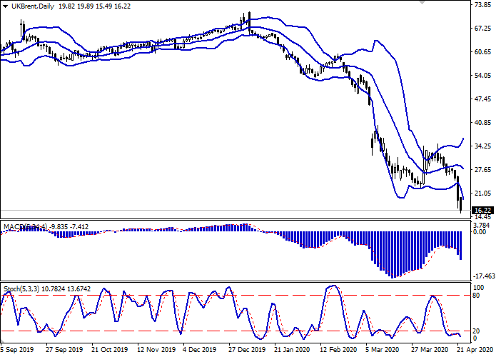 布伦特原油价格下跌,测试每桶16美元,创下历史新低。报价的下跌是由于周一出现的恐慌,当时美国5月份原油期货价格历史上首次跌至负值。新冠疫情和随之而来的旅行限制导致石油需求下降,而减少生产的措施未能显著改变这种情况。现有的仓储设施几乎已经满负荷,各公司被迫租用额外的船只来临时存放油品。