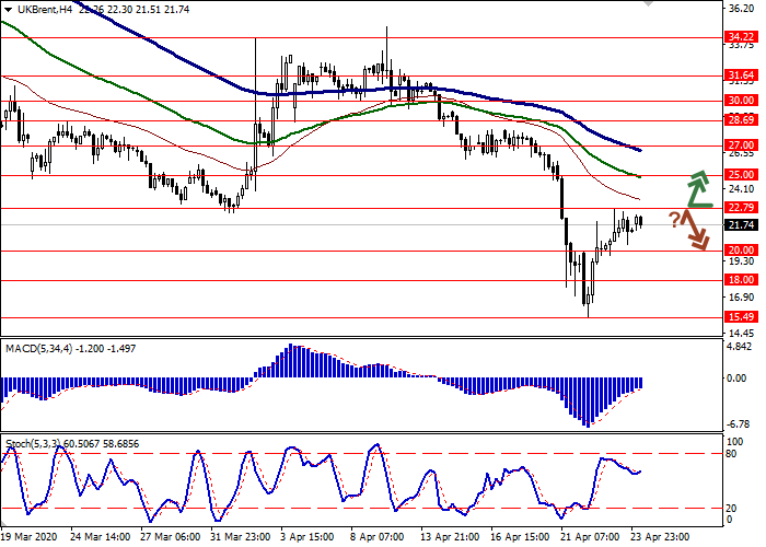 市场对各国开始逐步减产石油作出反应。尽管OPEC +正式协议将于5月1日生效,但一些国家,尤其是科威特,已经开始限制石油产量。油价周三得到了美国能源情报署报告的支持。该报告称,在截至4月17日的一周,美国石油储量增加了1502.2万桶,少于上一周增加了1924.8万桶,也略低于此前预测的1515万桶。