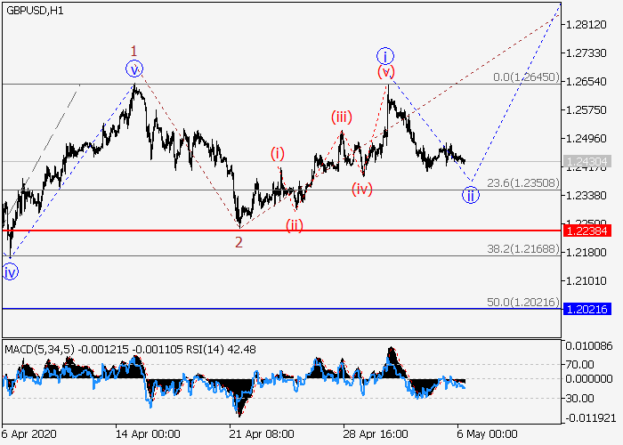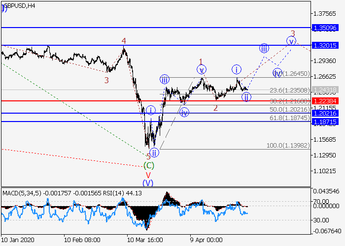 4小时图中,V的(C)的较高水平5的第五个下行波已发展,第一波(1)已开始形成。目前,(1)的较低水平3的第三波正在发展,其中局部修正正结束形成为3的波ii。如果假设正确,价格将会升至1.3201–1.3509。该情况的关键止损水平为1.2238。
