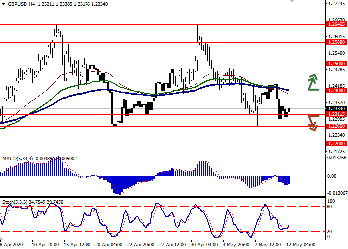 价格跌破1.2311–1.2300水平后,可以开设空头头寸,目标为1.2200。止损水平为1.2360。