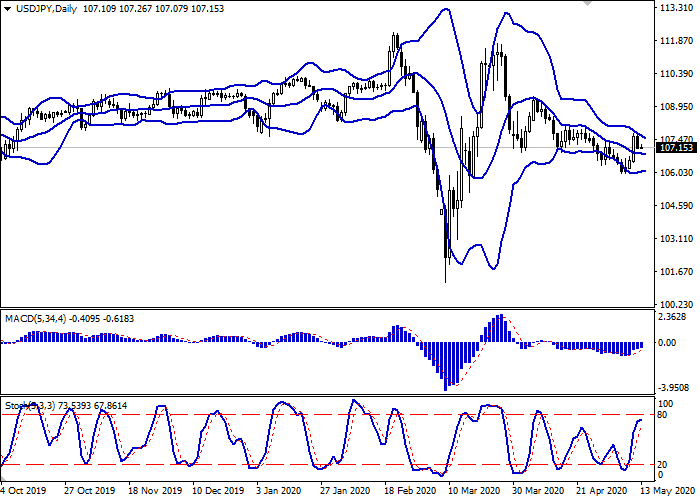 日线图中,布林带水平反转。价格区间正在收窄,反映出短期内交易的的不明确动态。平滑异同移动平均线指标正在增长,保持稳定的买入信号(位于信号线上方)。随机指数在接近80水平,在水平面上反转,表明周二出现了看跌情绪。