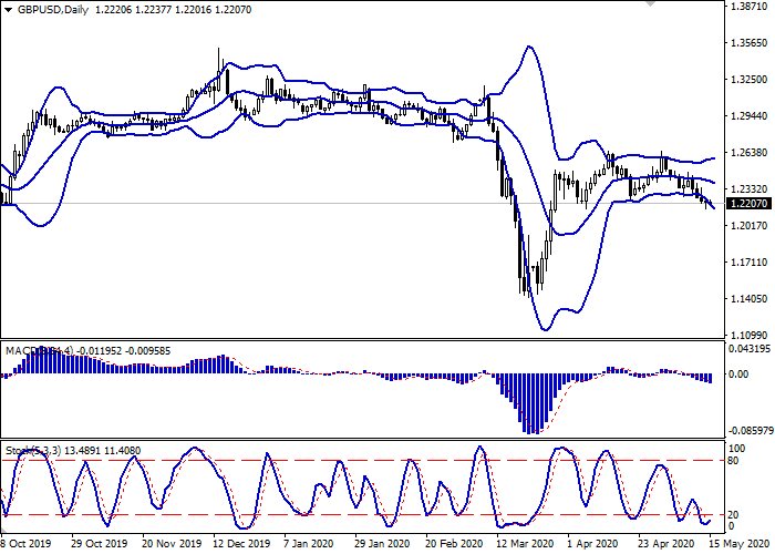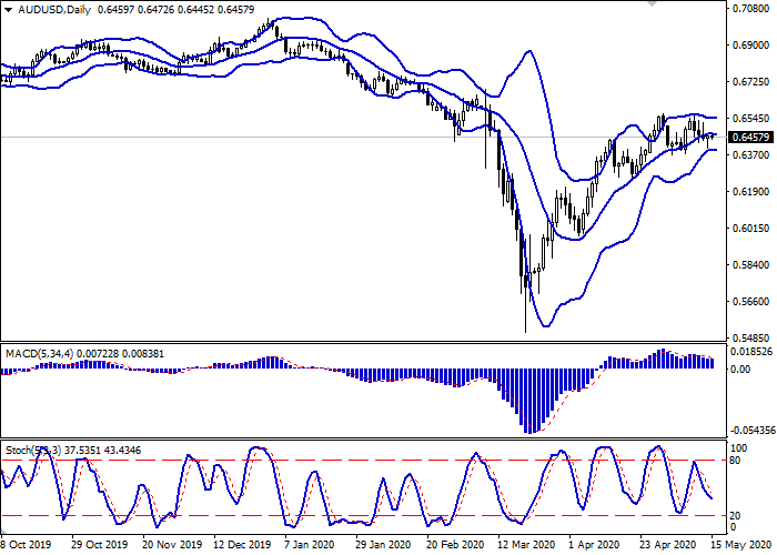 日线图中布林带呈逐渐下降趋势。价格区间扩大,为看跌趋势创造了新局部低点。平滑异同移动平均线下跌,保持相当稳定的卖出信号(位于信号线以下)。随机指标接近低点,正反转上行,表明在超短期内有修正性增长的风险。
