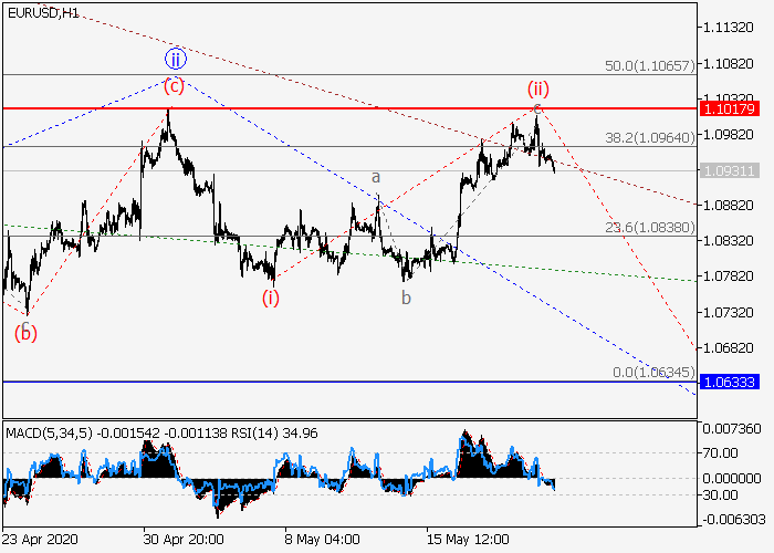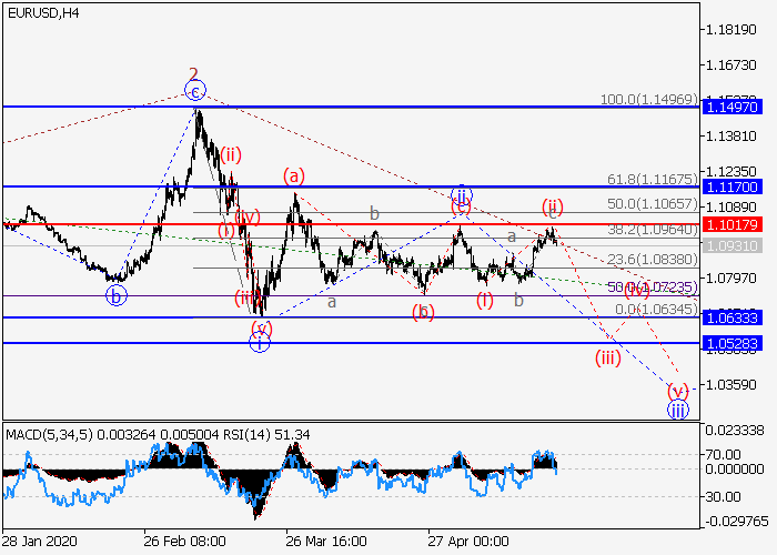 4小石头中,较高水平3的下行第三波发展,其中,3的第一波i已形成,上行修正结束为3的波ii。目前,3的波iii正在发展,其中局部修正已形成为iii的波(ii)。如果假设正确,价格将会在iii的波(iii)内跌至 1.0633–1.0528。该情况的关键止损水平为1.1017。