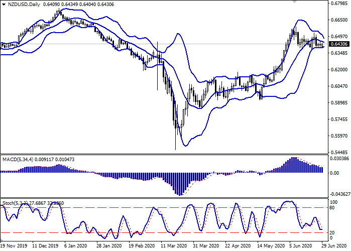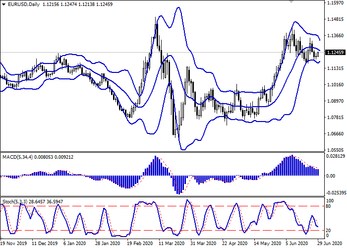 日线图中,布林带呈逐渐下降趋势。价格区间正在积极收窄,反映出超短期内出现了不明确交易动态。平滑异同移动平均线正在下降,保持相当稳定的卖出信号(位于信号线以下)。随机指数在上个交易日开始的短暂增长之后,再次向下反转,位于“20”附近的水平。