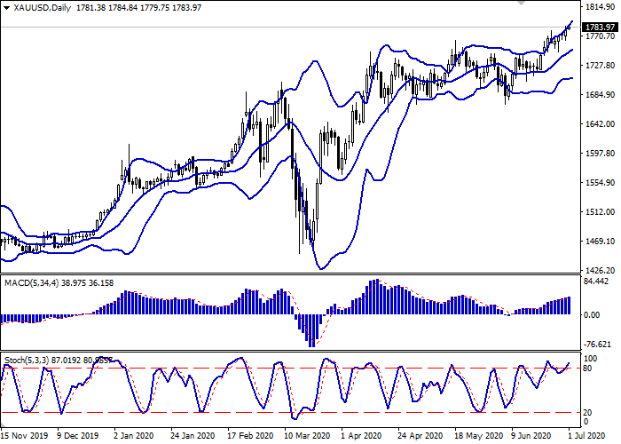 价格突破1790.00水平时,可以开设多头头寸。获利水平为1820.00。止损水平为1770.00。