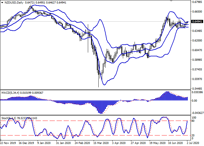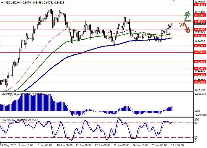 价格突破0.6500水平时,可以开设多头头寸。获利水平为0.6583–0.6600。止损水平为0.6460。