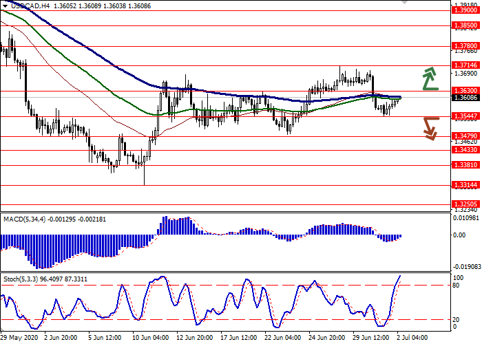 价格跌破1.3544后,可以开设空头头寸,目标为1.3433–1.3400。止损水平为1.3630。