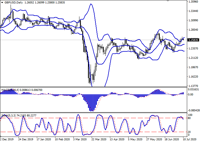 日线图中,布林带在水平面上反转。价格区间由上略微扩大,使看涨趋势刷新了局部高点。平滑异同移动平均线指标正在增长,保持弱买入信号(图柱位于信号线以上)。随机指数下行反转,超短期内发可能会修正下降。