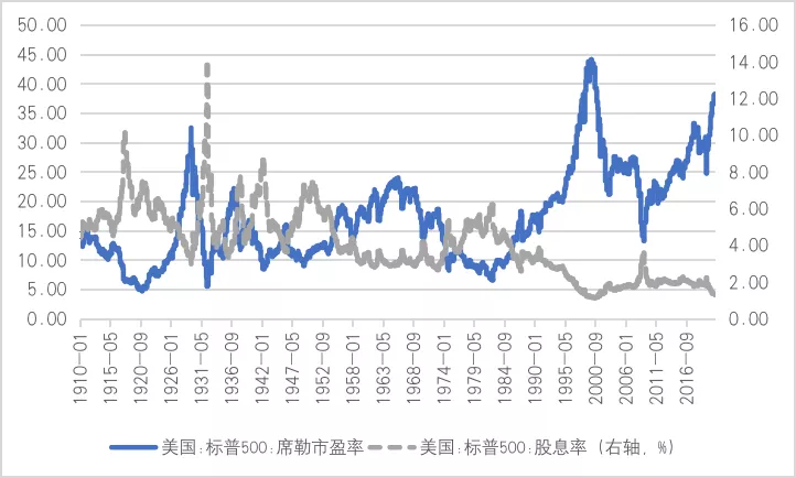 图4:美国股票市盈率及股息率(单位:倍;%)