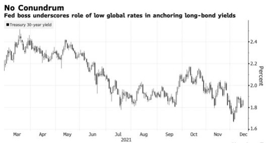 在美联储12月政策会议结束后,美联储主席鲍威尔强调了资金雄厚的外国投资者在抑制美国长期债券收益率方面的作用。这种动向预计将继续锚定收益率,这有助于解释为何美国决策者似乎对收益率曲线趋平很放松,而不担心这是否表明大幅加息可能扼杀经济增长。