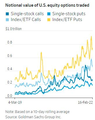 芝加哥期权交易所旗下Global Markets截至上周五的数据显示,历史上看跌期权交易最活跃的五个交易日中,有三个发生在2022年的头几周。