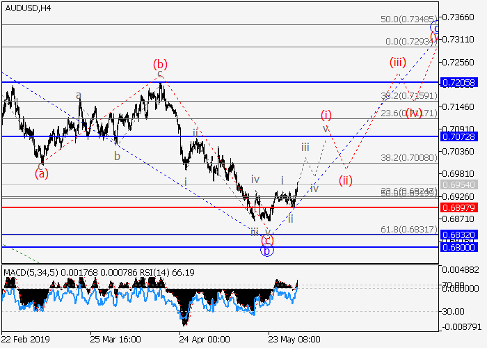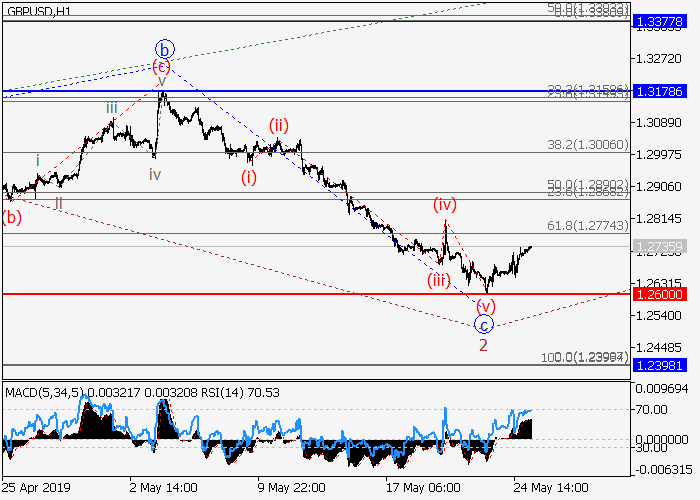 价格可能会上涨。4小时图中,较高水平的下行修正已形成第二波2,第三波3开始发展。目前,3的(1)的1的较低水平i的第一波已形成,1的局部修正ii已结束。如果假设正确,价格将会升至1.1447…